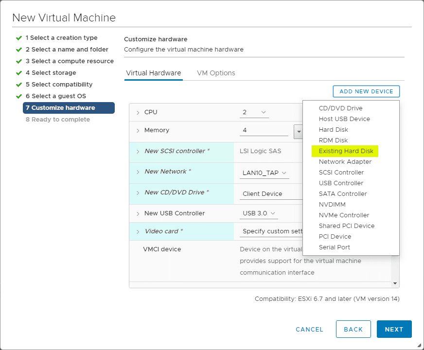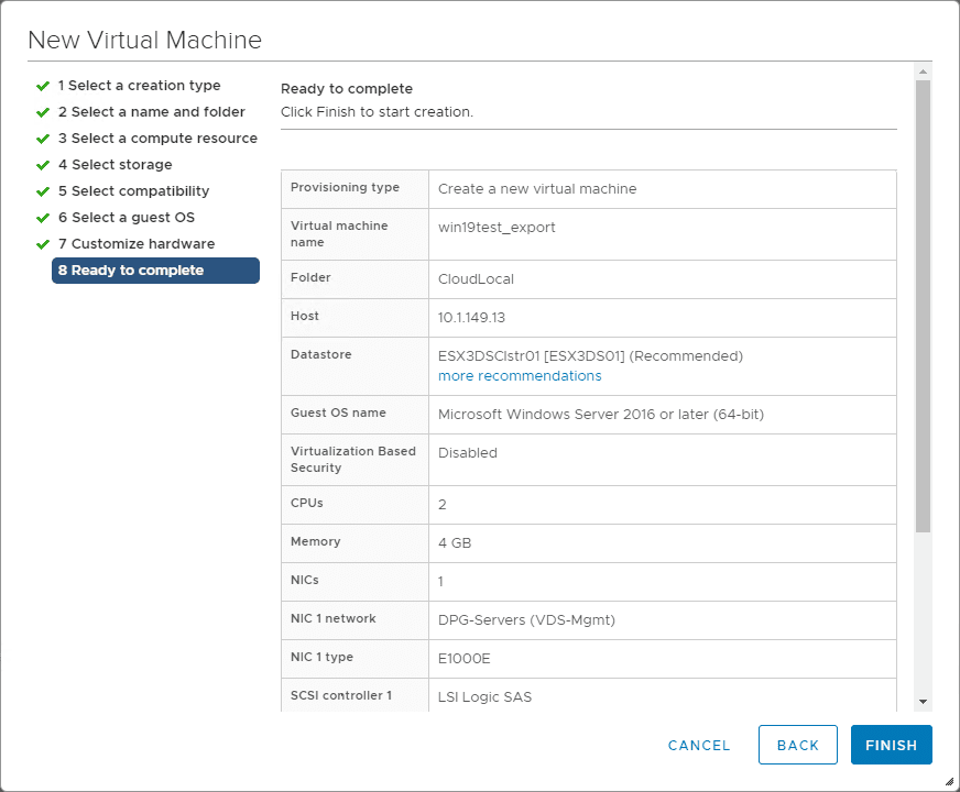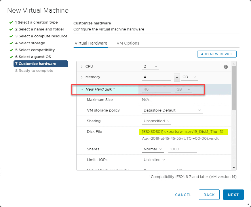 The final step of the journey to Easily P2V Physical Windows Servers to VMs with NAKIVO is creating a new virtual machine using the exported VMDK that was exported from the NAKIVO Recovery process. We copied over the exported disk to the ESXi host. Now we just need to create a virtual machine to use it.