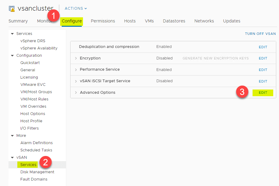The great thing about this setting change is there is no disruption to your vSAN datastore or any maintenance period you have to undergo to change it. The toggle can simply be flagged either way while VMs are running and the vsanDatastore is mounted.