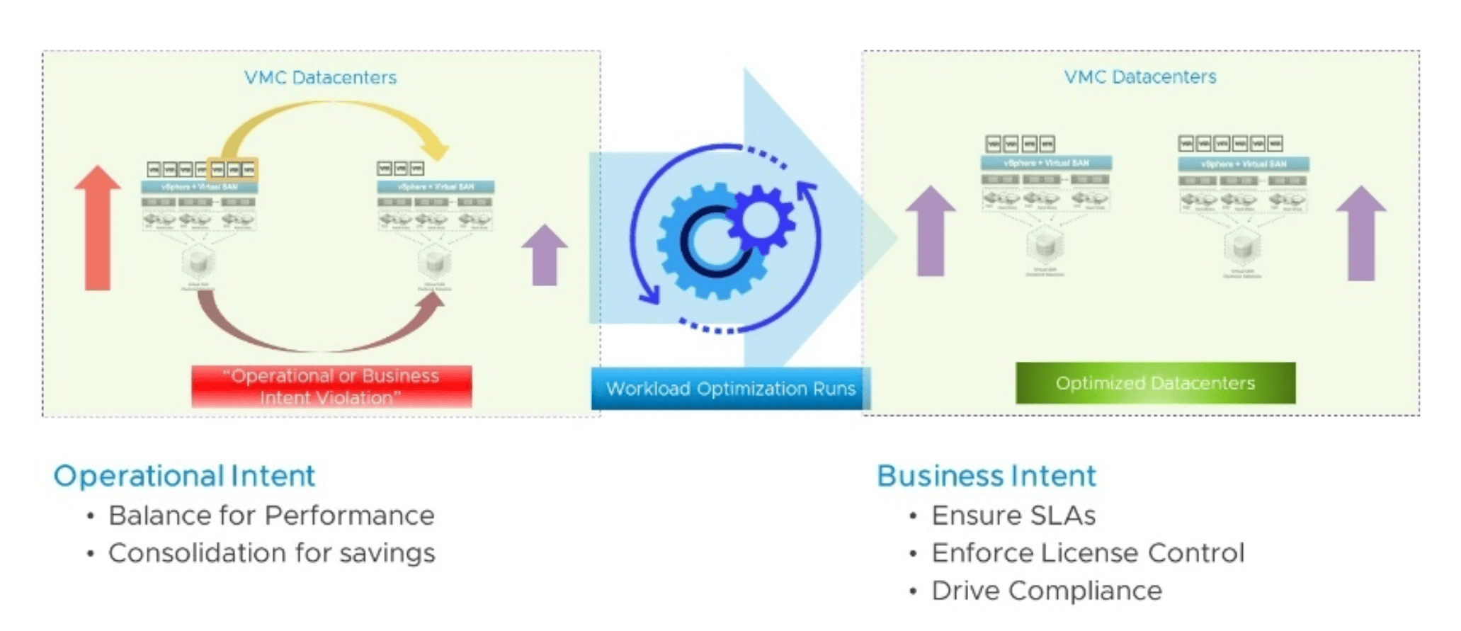 New with 8.0 is the new intent-driven performance optimization for VMware Cloud on AWS with cross-cluster workload balancing and rightsizing.