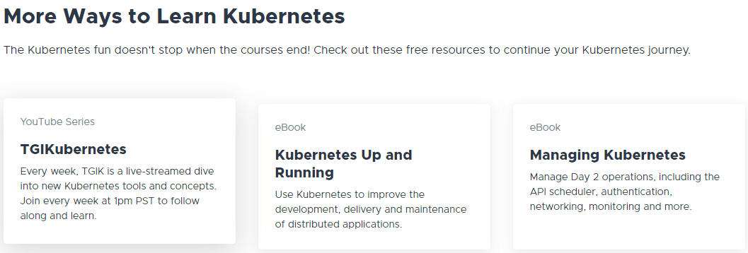 There is no question this site will help you quickly build some basic knowledge and concepts regarding Kubernetes. This foundation knowledge is key to building more advanced knowledge and comfort with containers and Kubernetes.