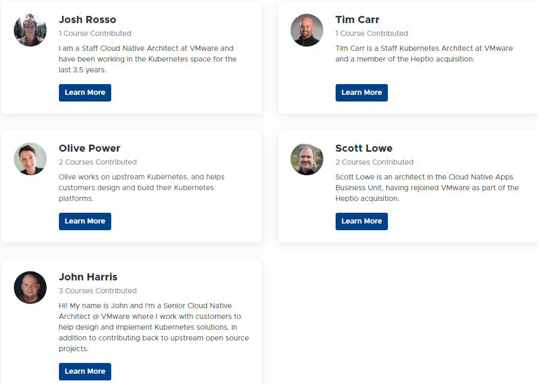 The online Kubernetes Academy contains a who’s who list of Kubernetes experts who are instructors for the class. It helps to know the knowledge base for the material is well founded and experienced.