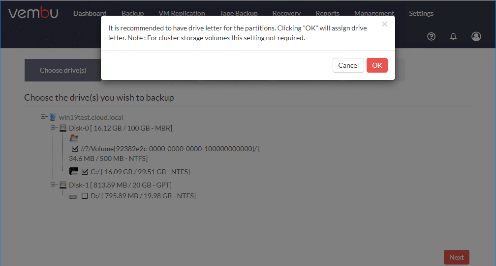 Vembu will assign a drive letter to the system reserved partition for backup purposes.