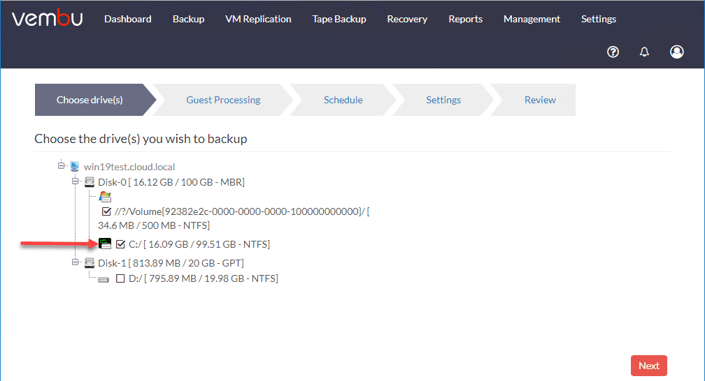 The physical server backup provided by Vembu is easily done all from within the Vembu BDR Suite console. Let’s walk through the process to configure a backup of a physical Windows Server with Vembu BDR Suite.