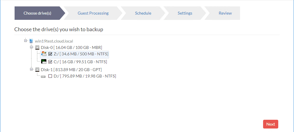 Choose your guest processing settings. This allows you to have application aware processing enabled for the backup job. This ensures applications like SQL Server are backed up in a consistent state.