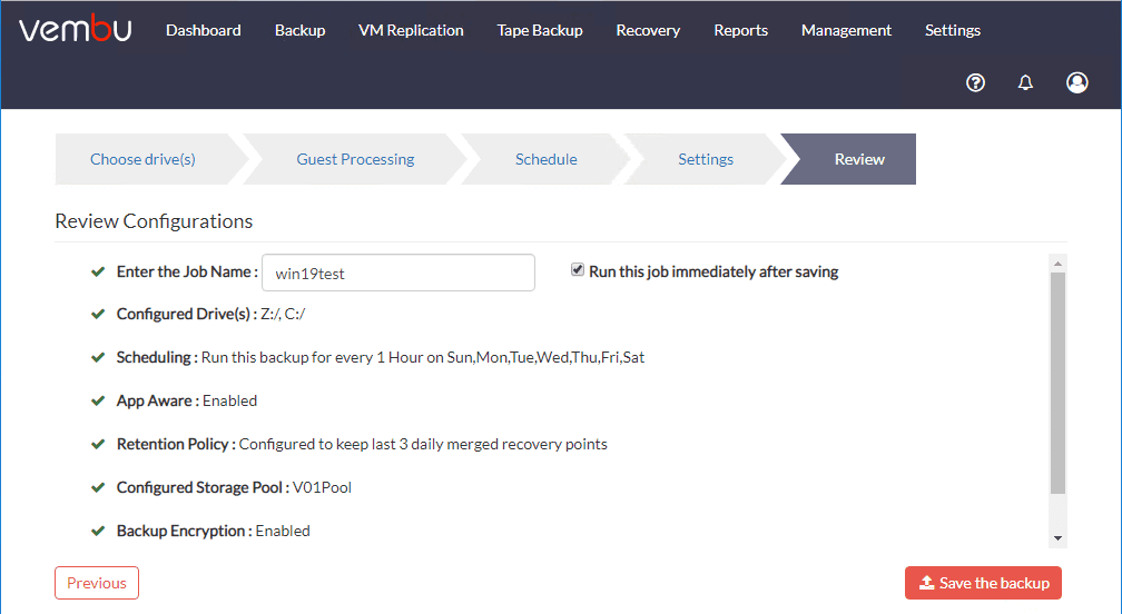 Part of this capability is made possible by what Vembu calls the VembuHIVE file system. With VembuHIVE, the formatting between various hypervisors is done instantly for each backup that is taken. This can be backups of virtual environments or physical Windows Servers.