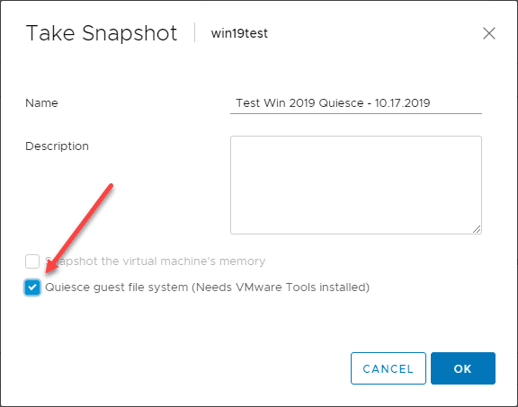 However, I very rarely use the Quiesced snapshot that is referenced in this article. I decided to run through a few basic tests of the supposed Windows Server 2019 VMware snapshot bug and see what results I came up with.