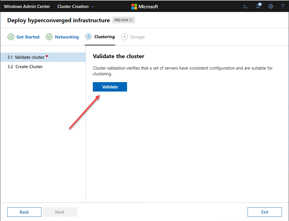 This has only two tasks, Validating the Cluster and Creating the Cluster. Click the Validate button to validate the cluster for creation.