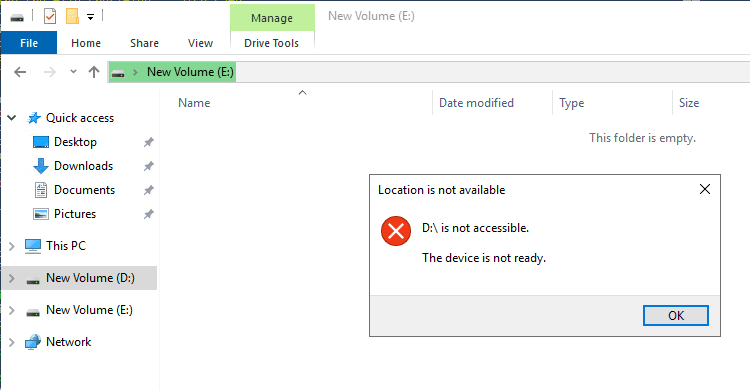 On the replication partner that is the destination of the replication, as expected, I tried to browse the “D Drive” and am unable to.