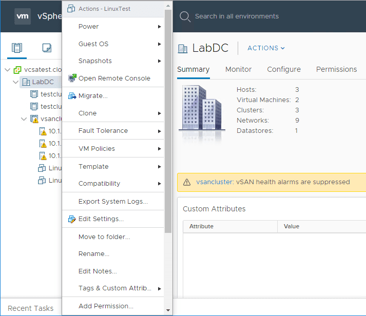 Managing virtual machines is extremely easy in the vSphere interface. You can change settings easily, migrate VMs, control power, snapshots, and many other things with the quickness and speed of the HTML 5 interface.