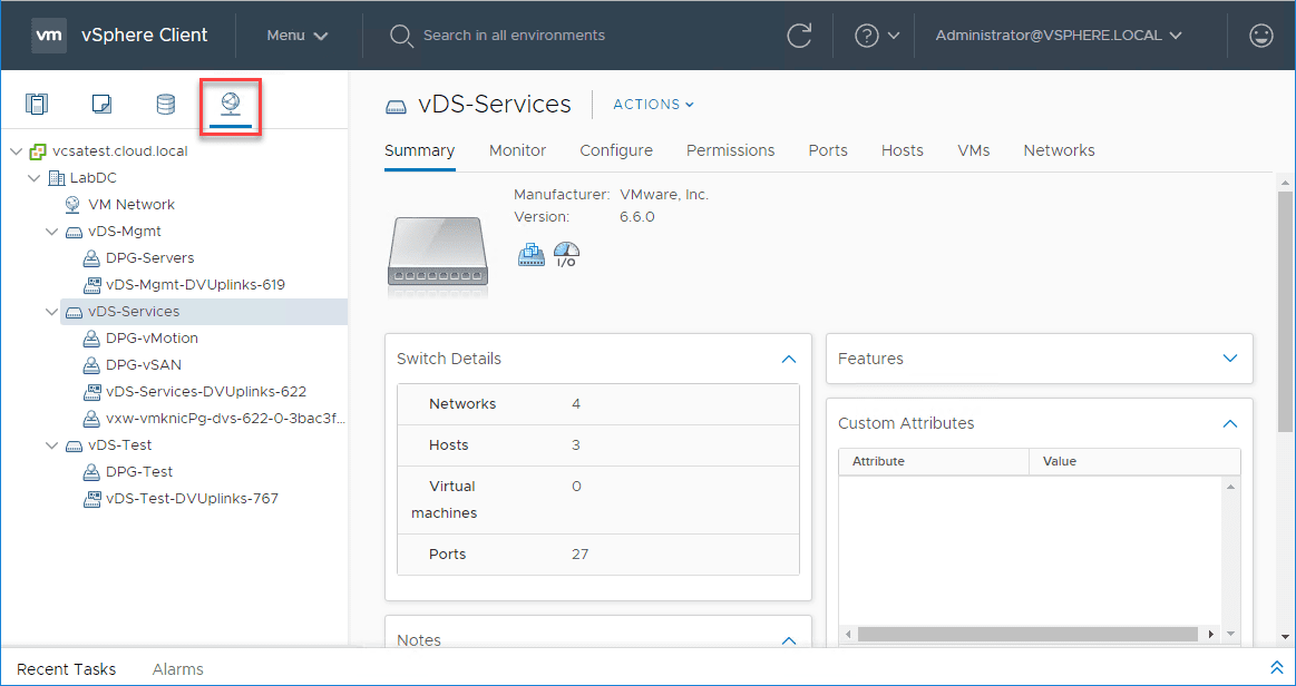 In the networking view, you can with the fully-featured client in vSphere Client have all the expected functionality with Distributed virtual switches.