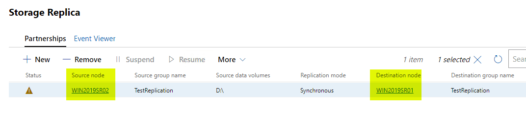 Below, you see I am managing Windows Server 2019 Storage Replica in the Windows Admin Center under the Storage Replica menu.