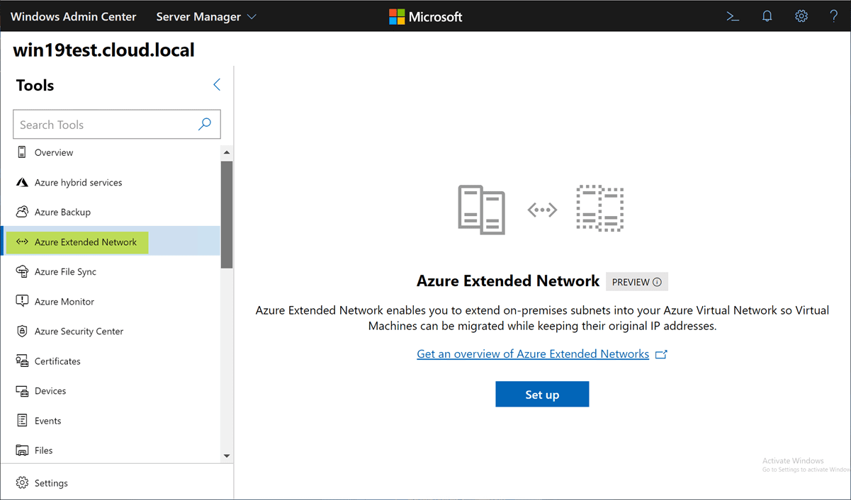 - Azure Extended Networking – Networking is one of the hardest challenges to solve for organizations moving resources between on-premises and cloud environments, especially during coexistence/hybrid configurations. Windows Admin Center offers Azure Extended Networking to help ease the challenge of hybrid connectivity.