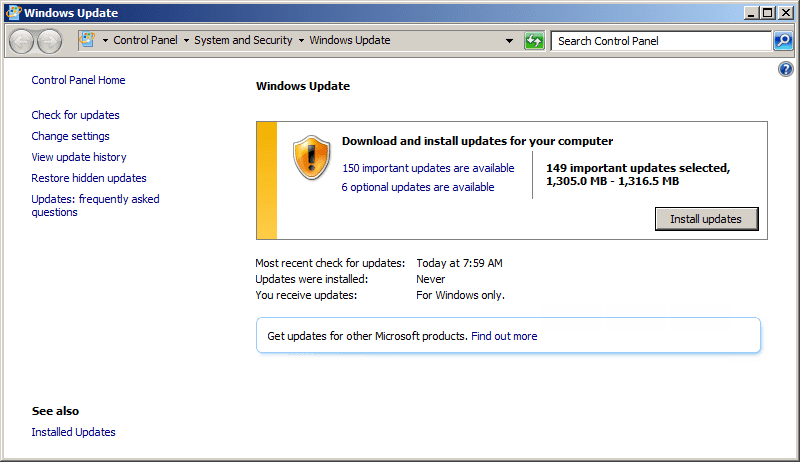 So, I ran all the available updates, which were quite a few.