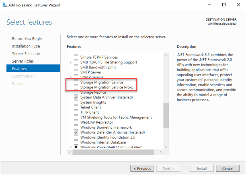 To get started, you will need to meet the prerequisites above. I have already got a Windows 2008 R2 Server test box up and running as well as a Windows Server 2019 server that will become the target for the migration using Storage Migration.