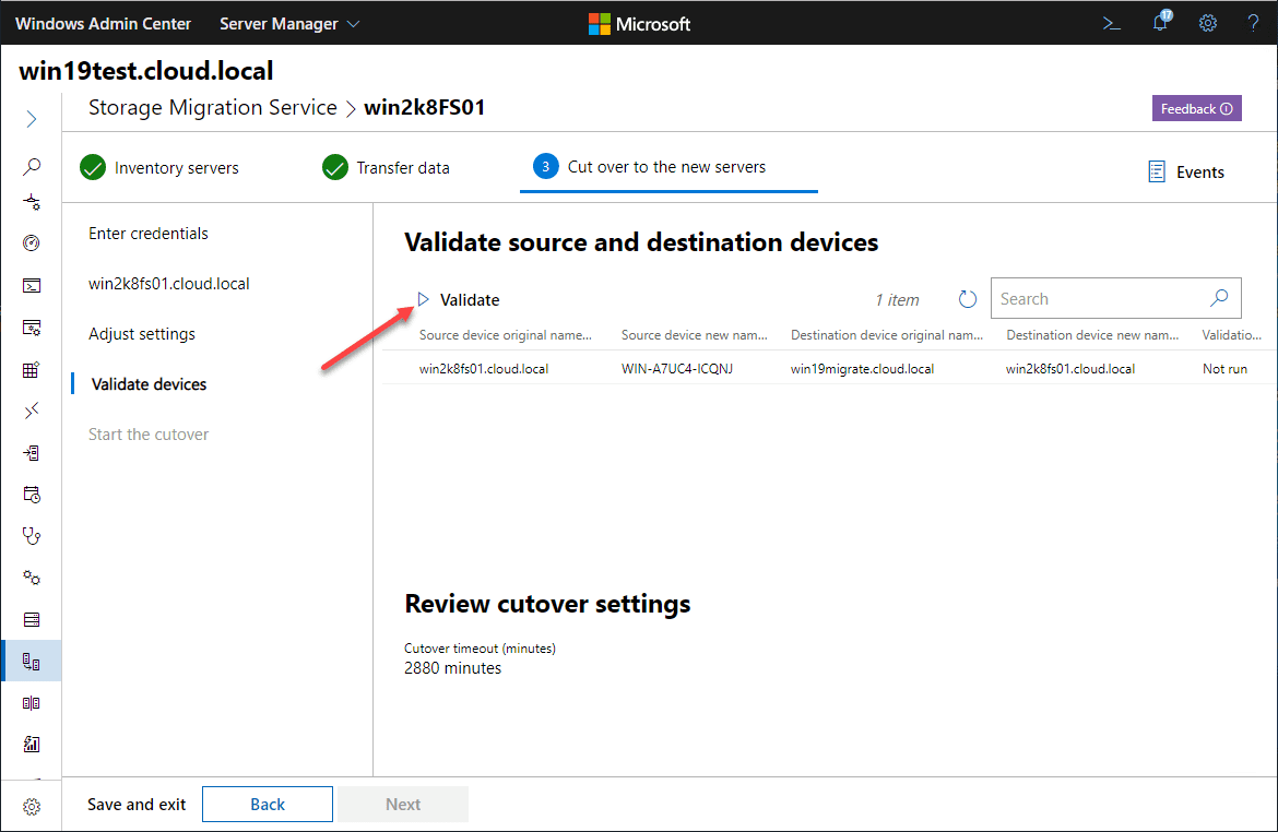Validate the source and destination computers which in our case is going to migrate Windows Server 2008 R2 to 2019.