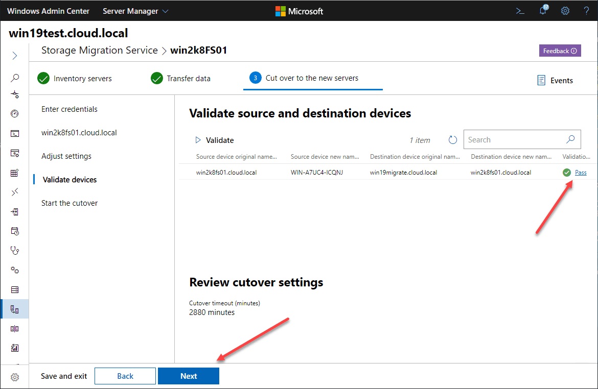 Validation passed, ready to perform the cutover.