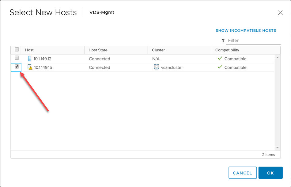 After removing the ESXi host from the VDS switch, add it back to the VDS switch.