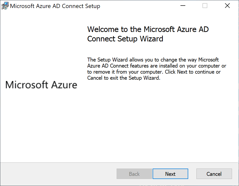 Once you have downloaded the Microsoft Azure AD Connect setup file, run the setup. Click Next.