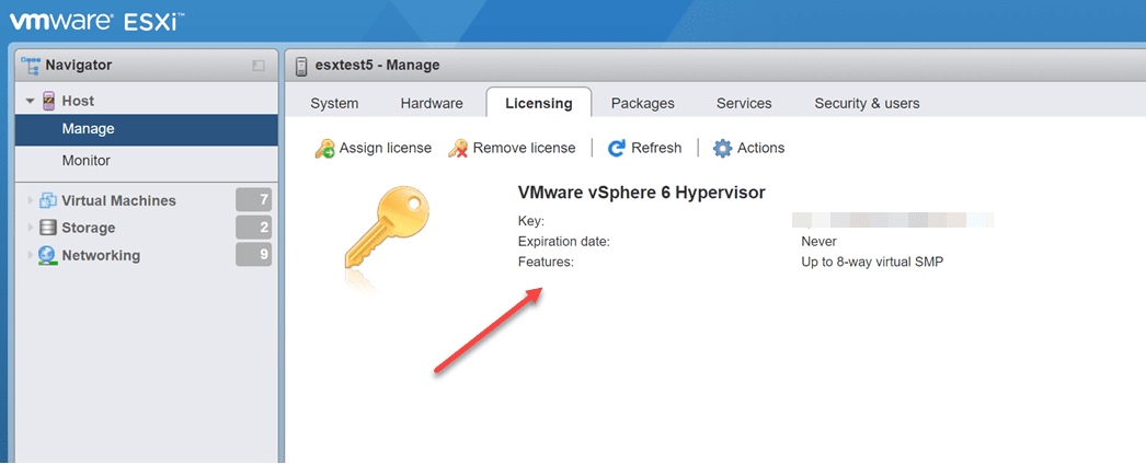 Assigning the VMware ESXi free license is as simple as logging into the ESXi host UI and entering the license key you received from VMware for the free VMware hypervisor.