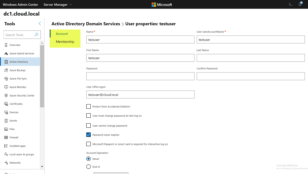 Windows Admin Center New Active Directory Extension