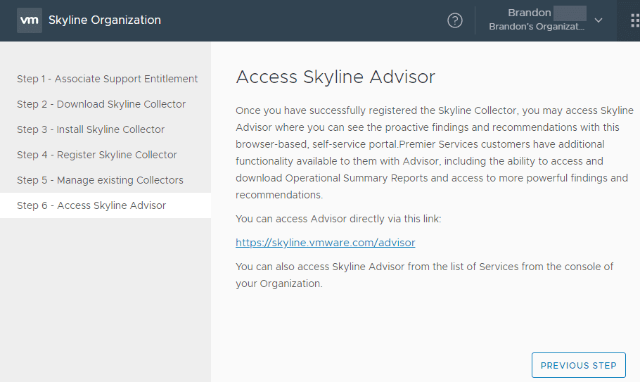 Back on the VMware Cloud side, you can click the link to access your Skyline Advisor environment.
