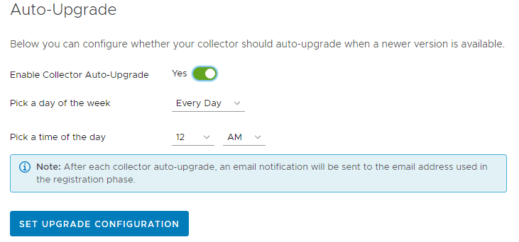 If you choose the auto-update toggle, this is what that looks like. You can then further set the time you want the upgrade check/update to happen.