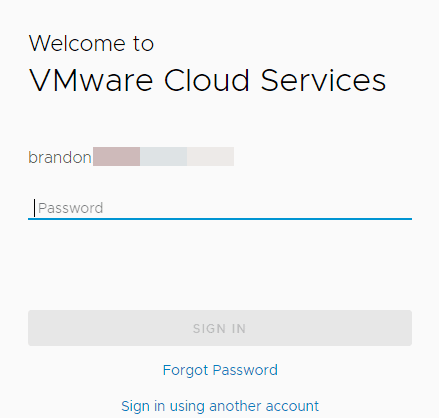You will be prompted to sign into the VMware Cloud using your VMware account email address/password.
