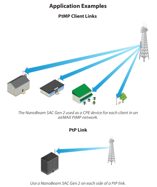 With the Ubiquiti NanoBeam 5AC there are a couple of use cases and applications for the platform including point-to-point or point-to-multipoint applications.