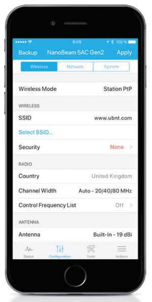 The great thing about the Ubiquiti NanoBeam 5AC Gen 2 units is they have a management radio that only runs for 15 minutes (configurable) after the unit is powered on. This is a handy feature as you can take your smartphone, connect to your first bridge unit, configure it, and then connect to the second unit, configure it and actually get everything up and working without hooking up a laptop.