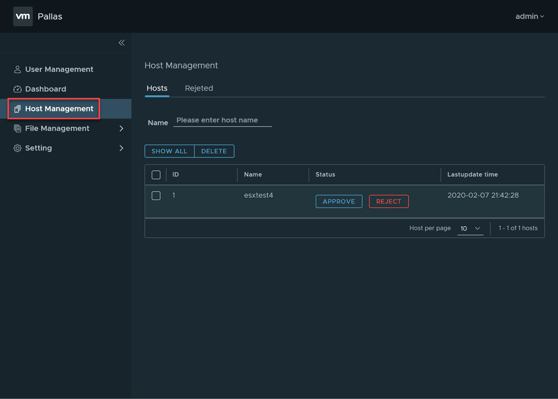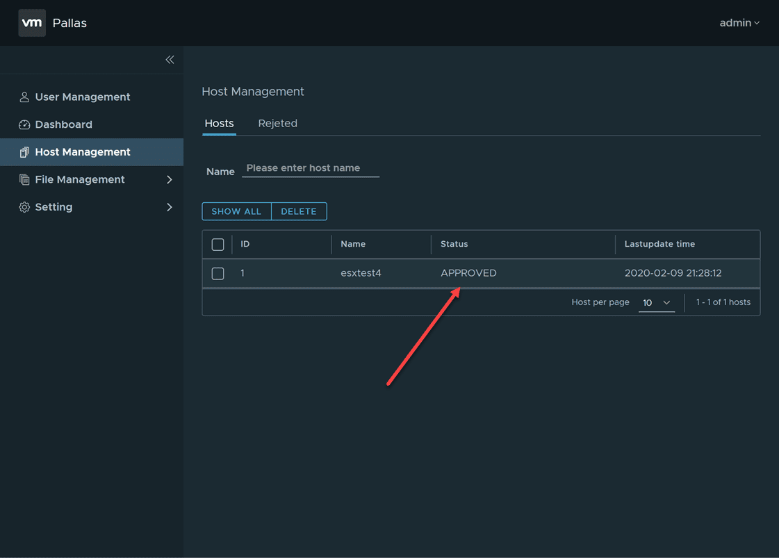 After logging into your Pallas Manager, you should see that you have a host approval waiting on you under the Host Management section. Click the Approve button.
