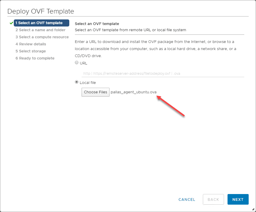 The customize template step is the step to pay attention to as you will set your credentials and network configuration for your appliance here.