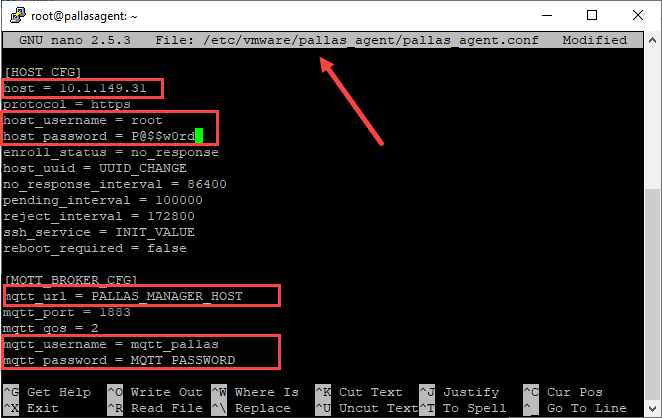 After you have deployed both appliances, there is just a small amount of configuration that you will need to do. You will need to edit the file /etc/vmware/pallas_agent/pallas_agent.conf to set your ESXi host, credentials, Pallas Manager address, and credentials.