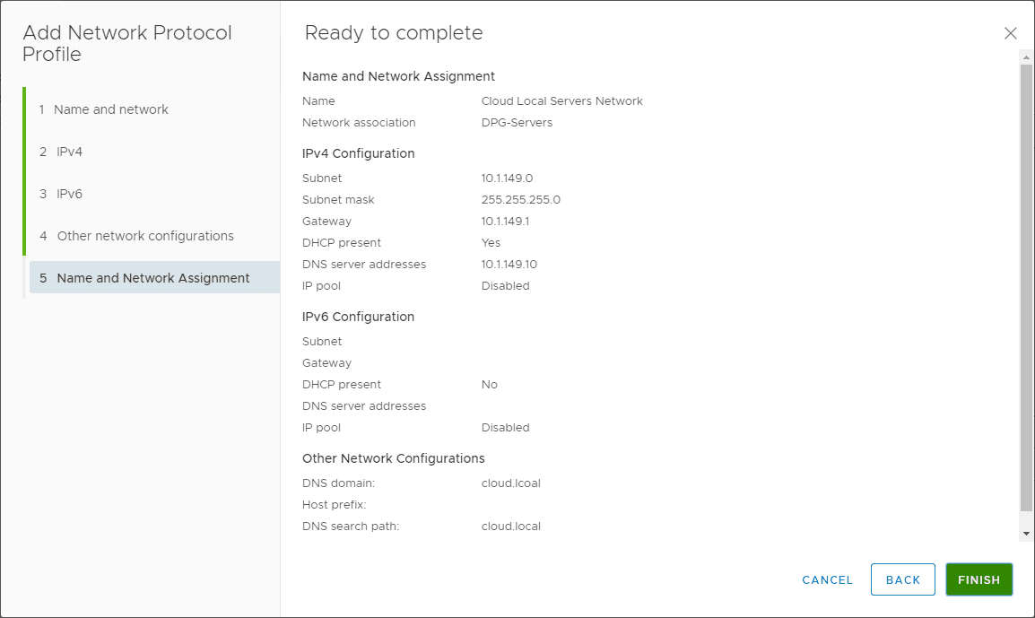After clicking Finish, you should see your new Network Protocol Profile listed and ready.