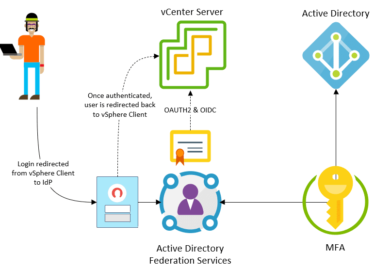 Passwords continue to be a weak link in the security posture for an organization. Weak passwords are an extremely large security hole. With vSphere 7, VMware is introducing identity federation capabilities with multifactor authentication.