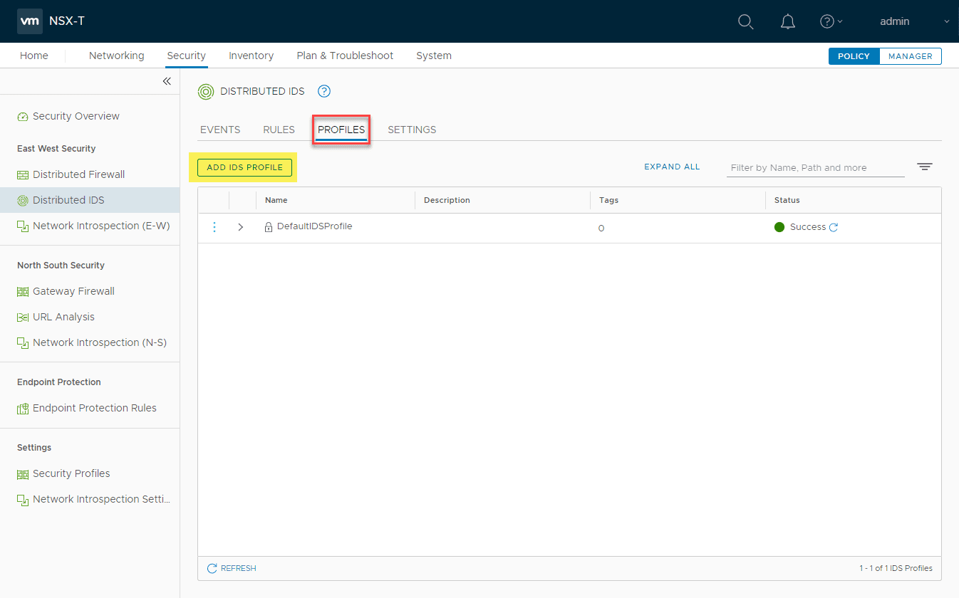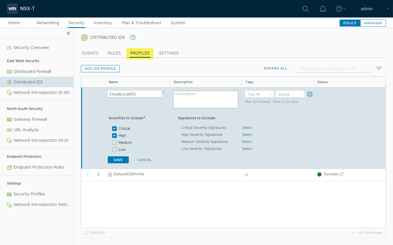 Adding an NSX-T 3.0 Distributed IDS Profile