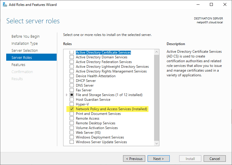 In my environment, I have a Windows Server 2019 server that I have installed the Network Policy and Access Services role on.