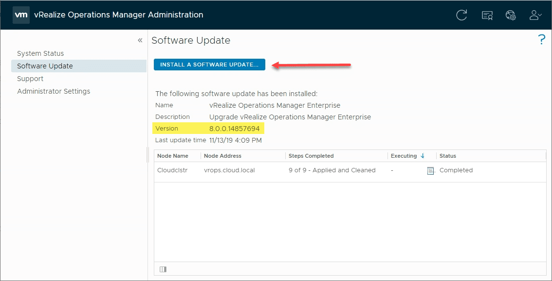 Below are screenshots taken from my home lab upgrade of vRealize Operations. I was coming from vROPs 8.0 up to 8.1.