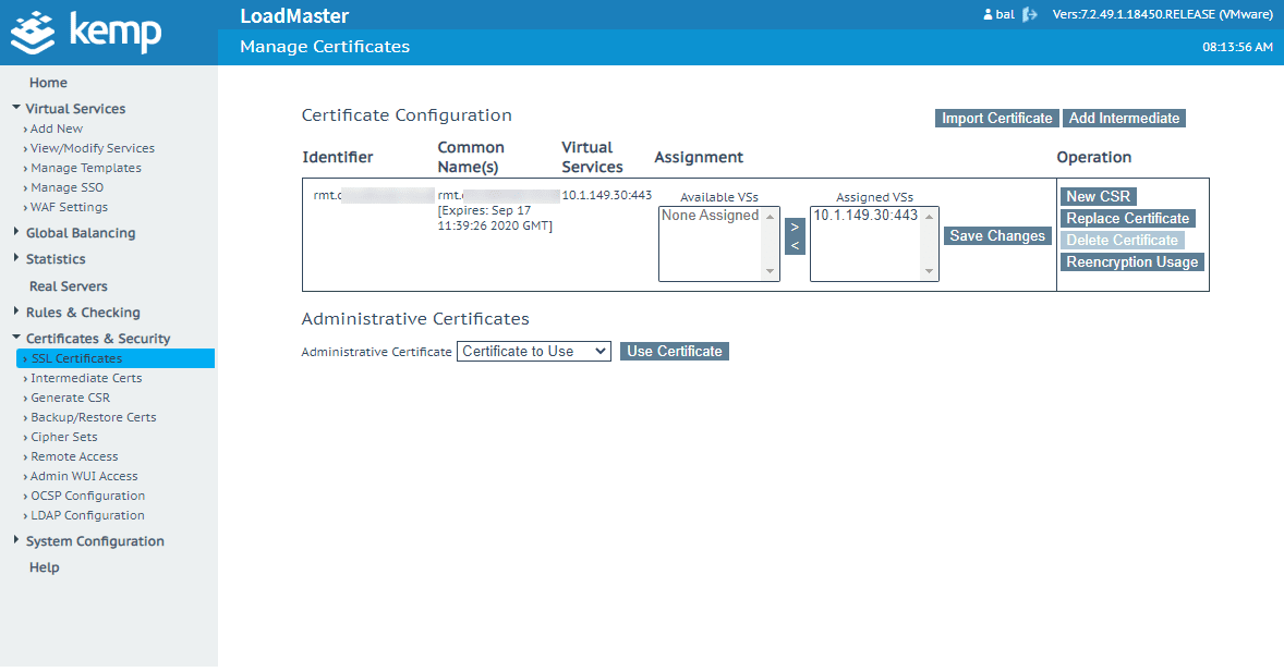 After installing on the UAG boxes, if you have a load balancer in your environment, you can also install your new cert there as well. I have a load balancer in front of my connection servers in the lab.
