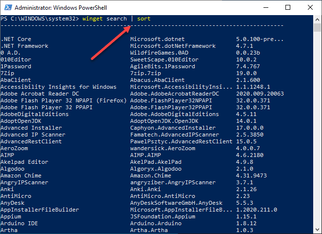 However, as you can see, the names are not ordered in a way that is easy to find what you are looking for. To more easily see the entire list of software you can install with winget, you can use the following command:
