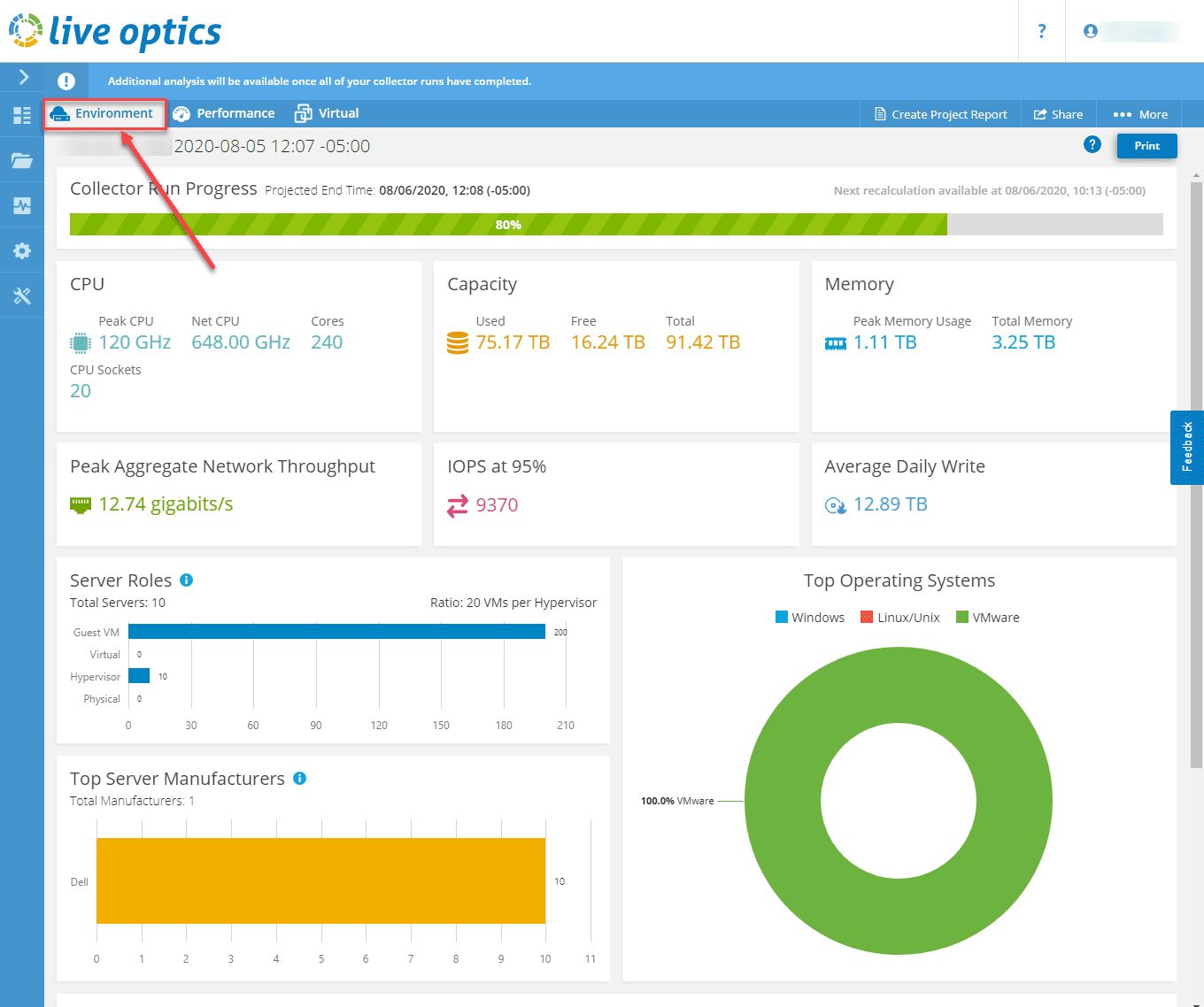 The nice thing about the process is that with the Dell EMC Live Optics tool, it is a fully automated process to query your environment, and it can run for 24 hours to pull a good representation of the environment over several hours.