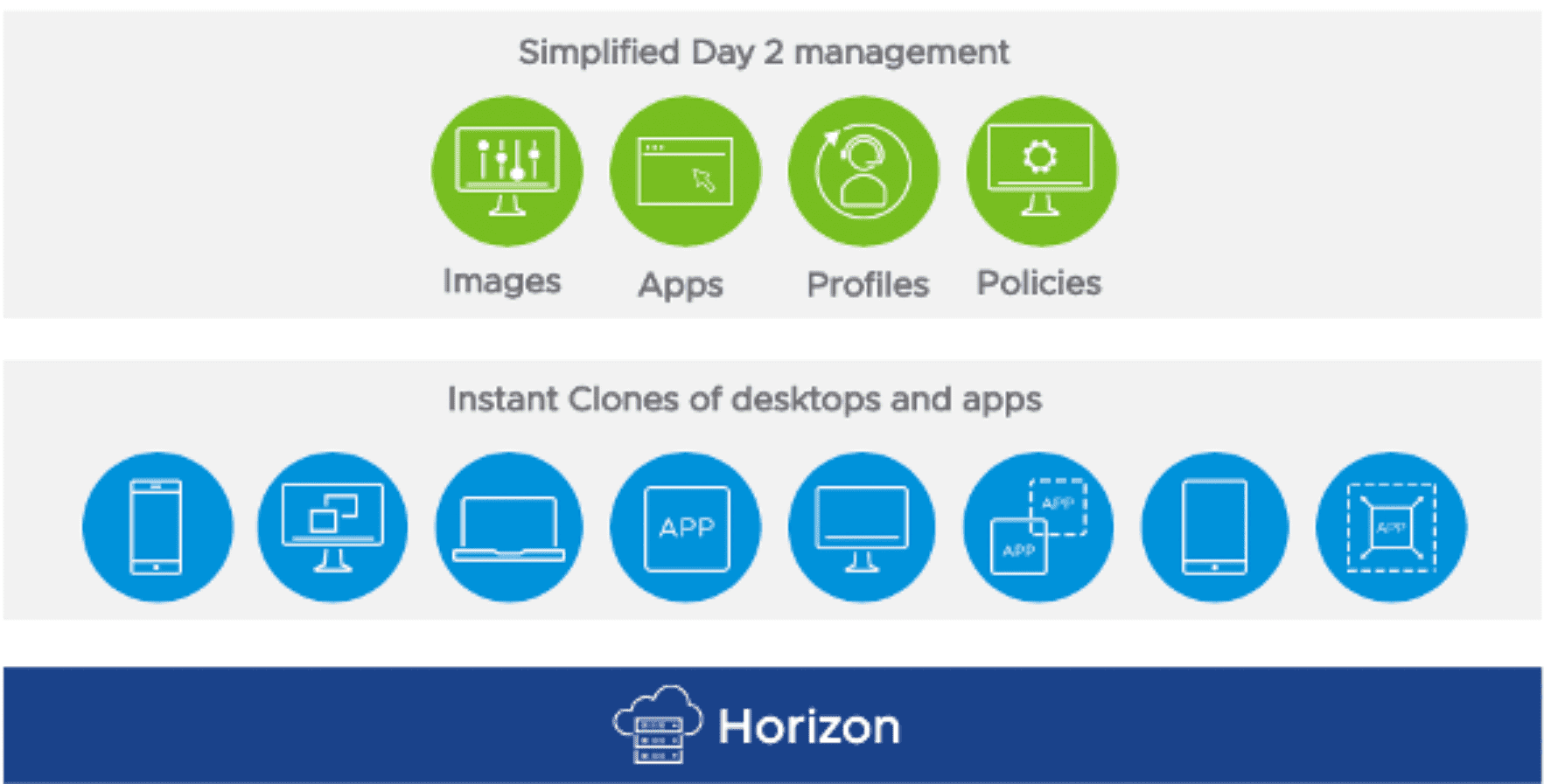 New with VMware Horizon 8, there are new features to provide even more powerful instant clone functionality. These include capabilities that allow organizations to provide stateless, non-persistent desktops in seconds, further bolstering one-to-many provisioning and updates that require no downtime.
