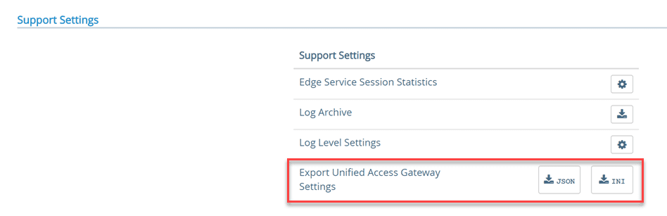 Next, while you are still in the System Configuration area, under Support Settings, export the configuration settings in the JSON format.