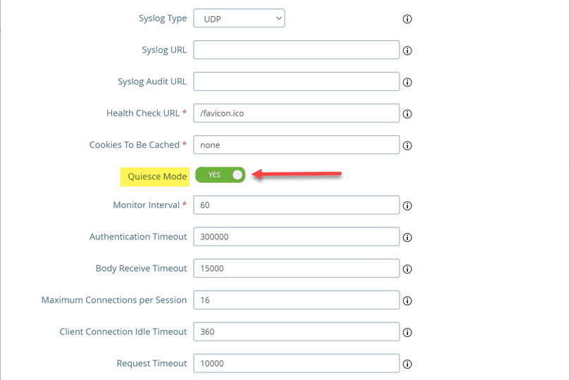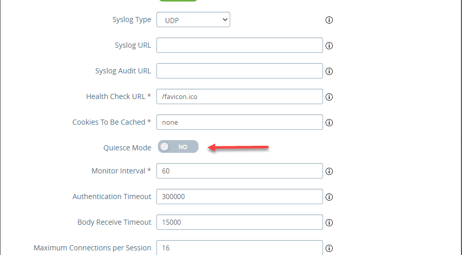 - You need to configure your Load Balancer health check URL for the appliances to the specialized health check URL controlled by the Quiesce Mode toggle.