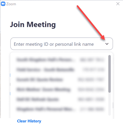 Additionally, while Zoom history does show previous meetings the person has connected to, the history is limited and starts rolling off if you connect to more than the history remembers. Also, what if the person accidentally clicks the clear history link in the dropdown box? Their previous meetings will be erased.