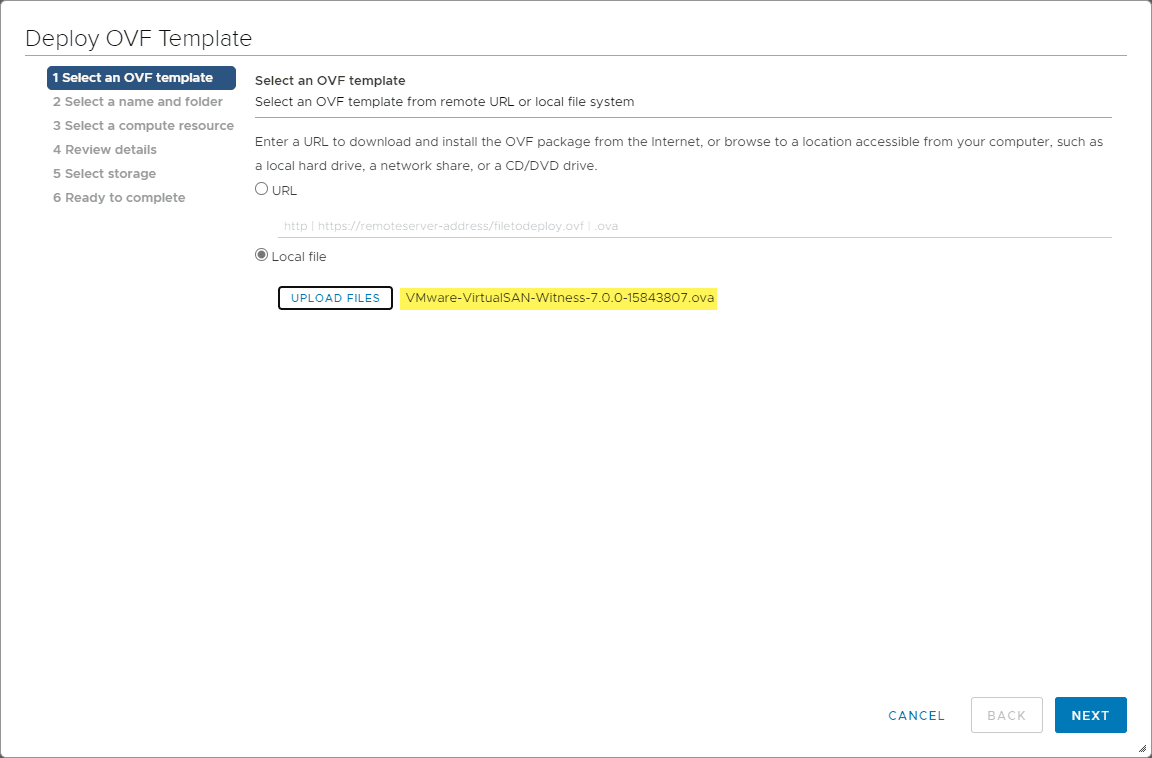 Choose the file that you have downloaded from VMware for the nested appliance.