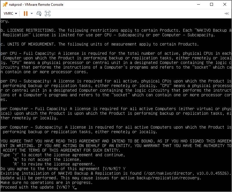Upgrading your NAKIVO Backup & Replication appliance to v10.1 from a previous version is simple. Below, I am simply highlighting the process to upgrade from 10.0 to 10.1 on my NAKIVO virtual appliance.