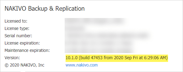After the update finishes, the NAKIVO services will restart. This will take a couple of minutes. After this completes, under Settings > Help > About you will find the NAKIVO appliance version.