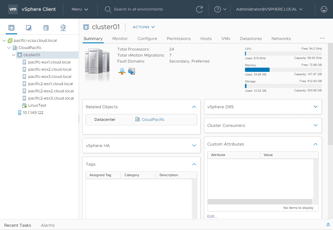 What does this look like from the nested ESXi lab side? You can see below, after you login to your nested ESXi lab vCenter Server, it looks like any other vSphere environment would look.