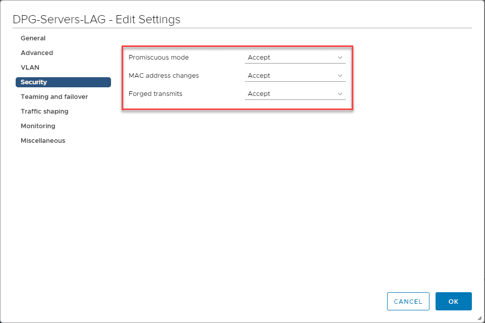 With nested virtualization, the nested ESXi host is hosting traffic for a number of other “nested VMs” that are ran on the nested instance of ESXi. When this is the case, multiple MAC addresses will appear in the source address 802.3 field. Each virtual workload hosted by the nested ESXi host would need to communicate using the virtual ESXi network adapter. These extra MAC addresses are rejected as forged transmits.