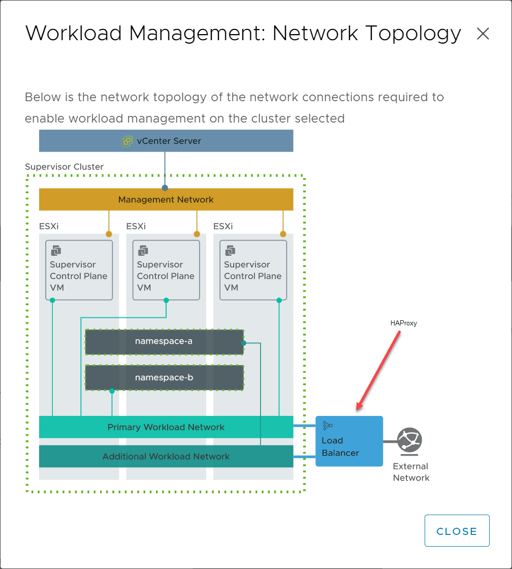 Below is an overview of the Workload Management: Network Topology when using vSphere with Tanzu Kubernetes. AS you can see the Load Balancer below in the network diagram is where the HAProxy will run.